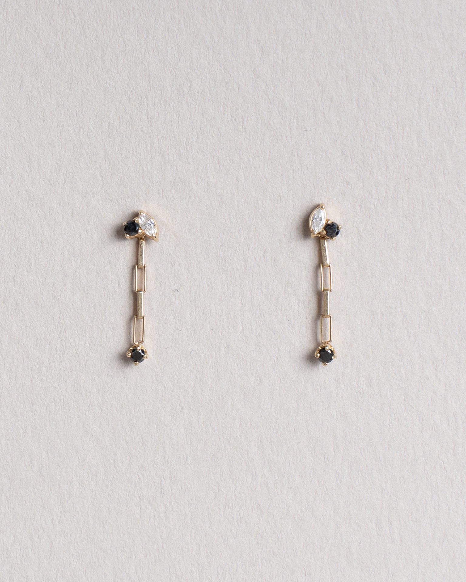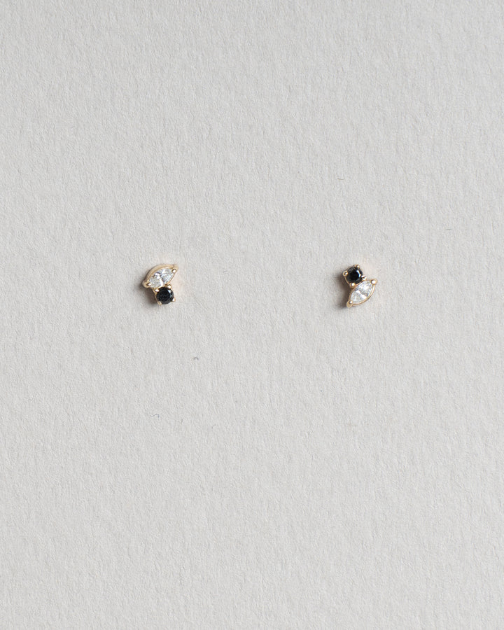 The Glimmer studs capture a celestial sparkle with their delicate marquise and round stones. Like starlight dancing in the night sky, these earrings reflect a distinctive, radiant glow that is both subtle and mesmerizing.