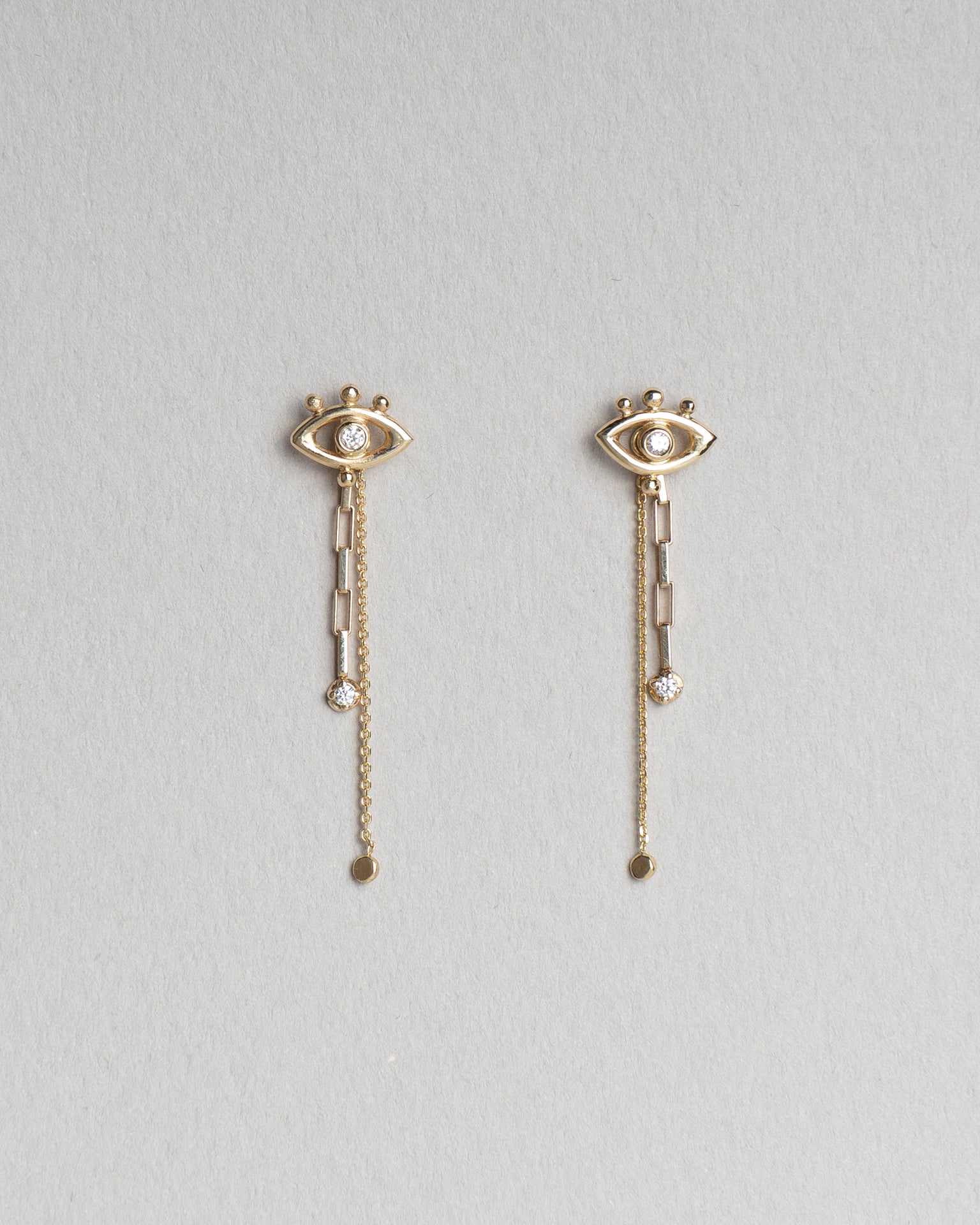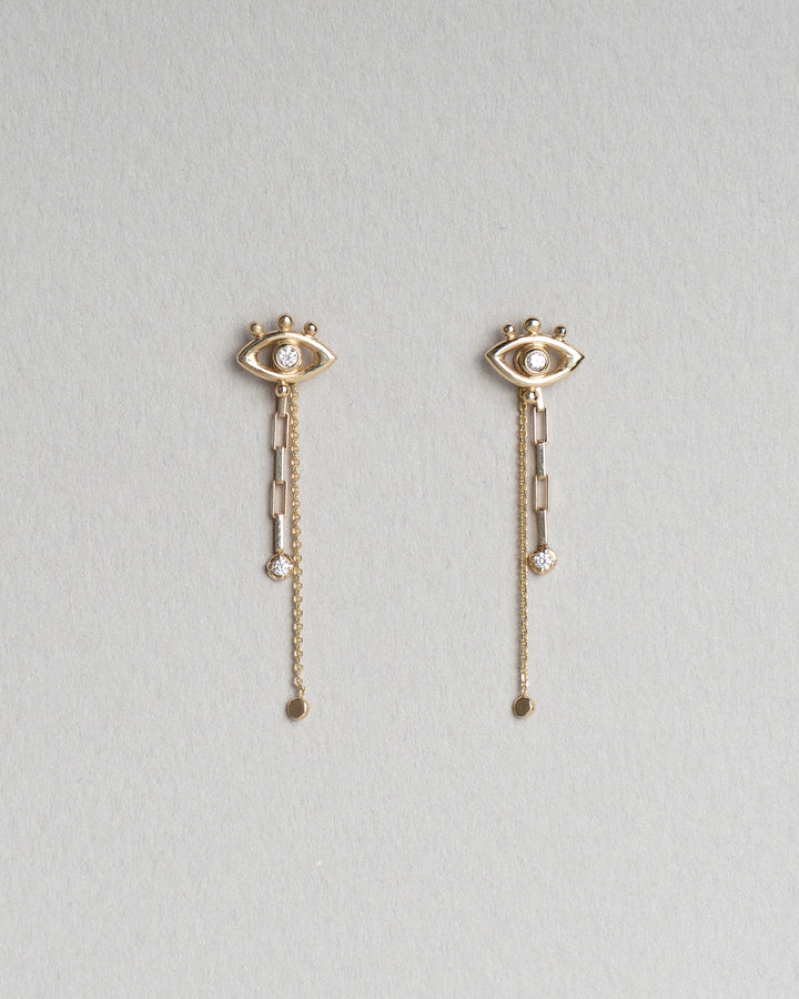 Selene Studs feature two unique chain earring jackets that slip on and off the stud, offering versatile styling options.