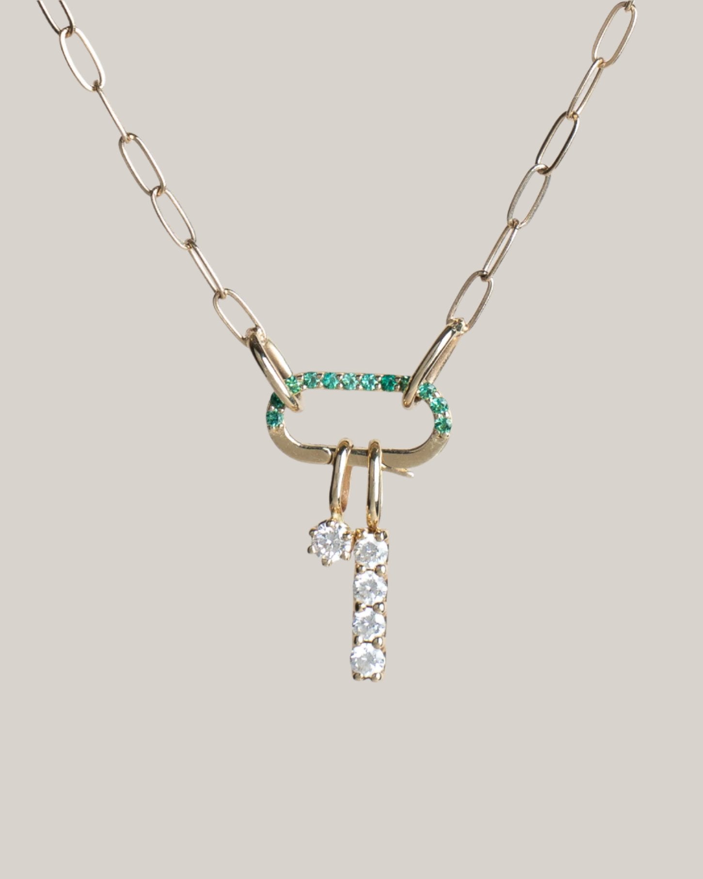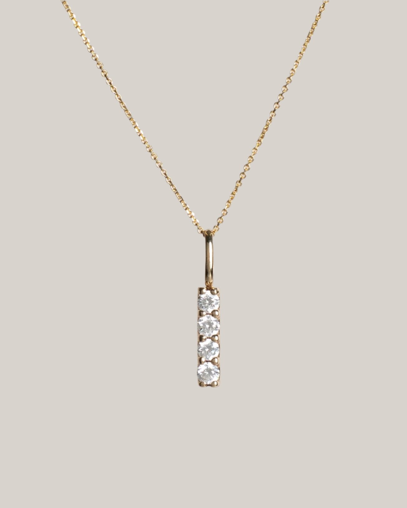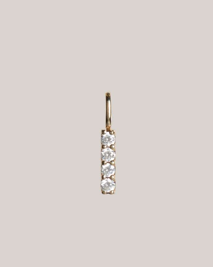 The Zenith Bar Charm embodies a moment of clarity and the journey toward reaching one's full potential. Its sleek, vertical form evokes the upward path of growth and self-discovery, while the clean lines and four Diamonds reflect a sense of balance and purpose.