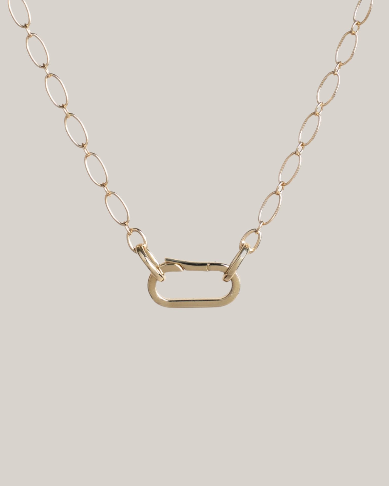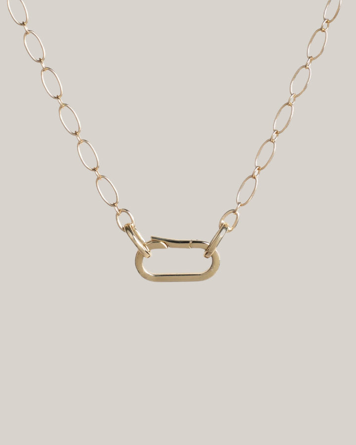 Drawing inspiration from the captivating sea nymph of Greek mythology, the Calypsa Charm Necklace channels the allure of the ocean. The alternating oval cable links echo the gentle flow of waves, while the chain’s smooth, feminine contours reflect the fluid, enchanting energy of water.