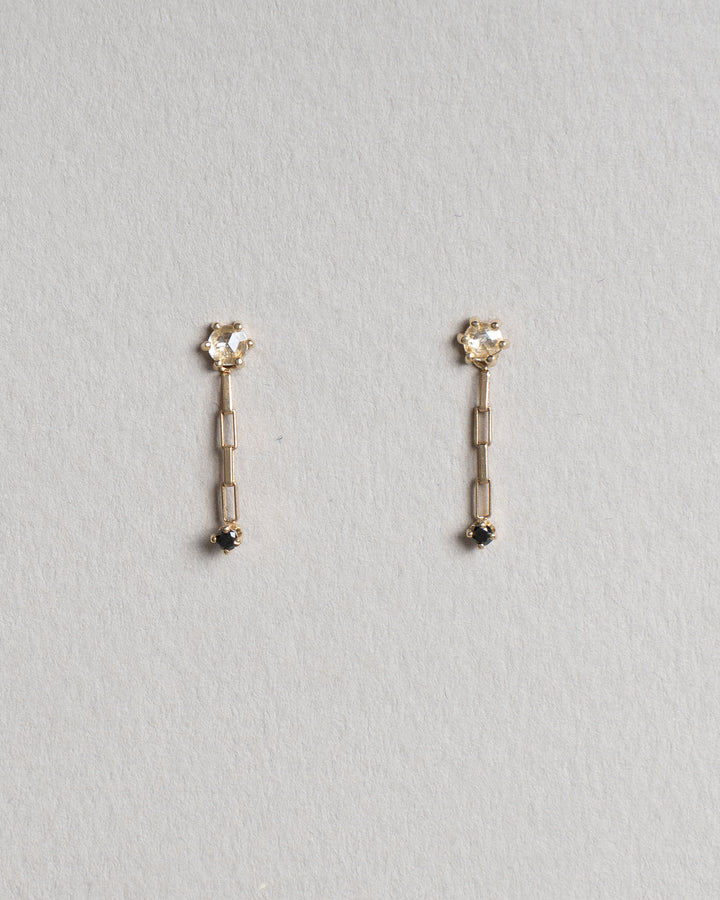 A striking fusion of light and shadow, the Candlelight Drops feature delicate rose-cut diamonds that shimmer with a warm, vintage glow, and evoke the intimate ambiance of candlelight. The dramatic black diamond chain adds a touch of contrast, creating a refined yet edgy look.